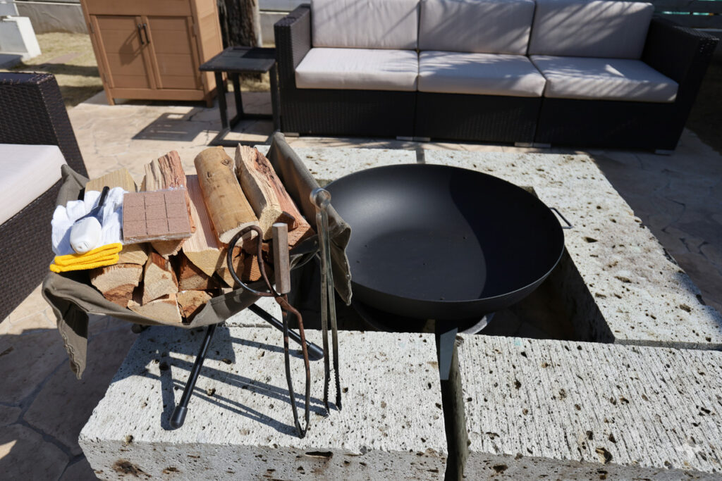 オプションをお申込みにならない場合は、ファイヤーピットのご用意はありますが、焚火の薪はお客様がご用意ください