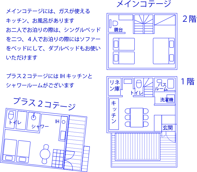 ・2人定員の「プラス2コテージ」の二つの建物が、